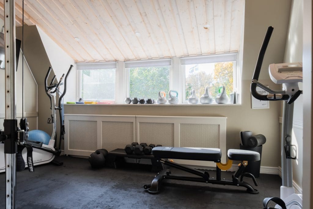I mitten på vår hotellänga så hittar ni vårt träningsrum som innehåller grundutrustning för en träningspaus när ni besöker vår herrgård.